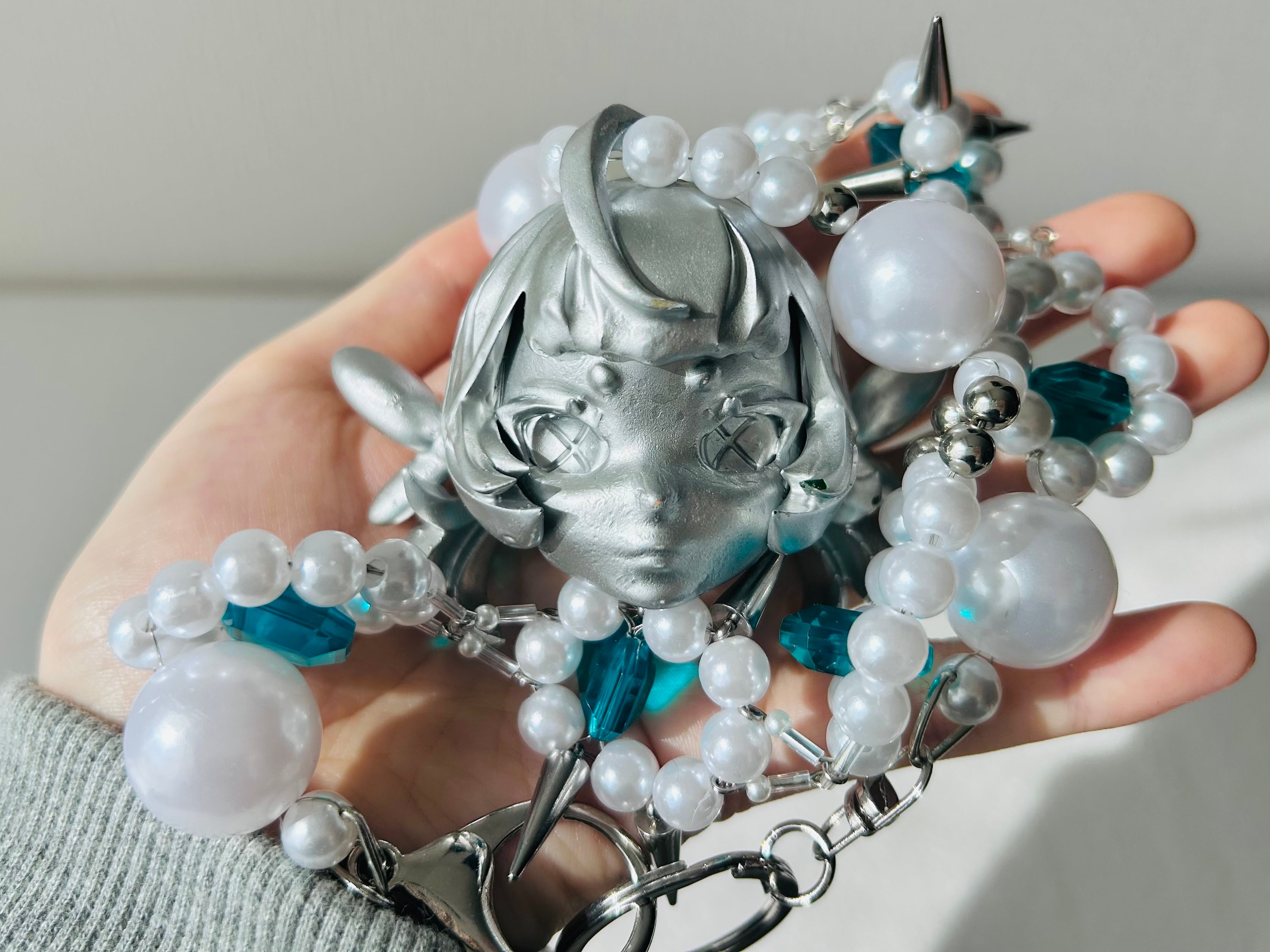 大粒パールとエメラルド、スパイクの編み込みがエレガントです。